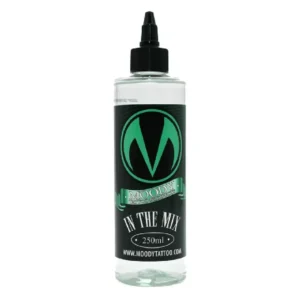O mixing solution pentru tatuaj este o bază sterilă, de obicei compusă din apă distilată, glicerină și hamamelis (witch hazel), care permite diluarea controlată a tușurilor negre sau colorate. În funcție de formula aleasă, poate oferi un efect mai cremos, mai translucid sau mai umed, ajutând la menținerea pigmenților hidratați pe durata sesiunii.