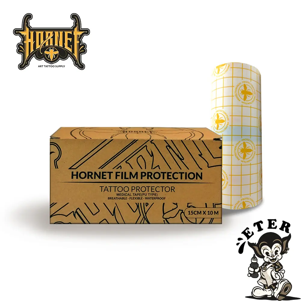 HORNET- Tattoo Film 15cm x 10m este o folie micro perforata de inalta calitate. In procesul de vindecare, protejeaza rana de bacterii si germeni, previne frecarea si impiedica orice factori externi sa interfereze cu procesul de vindecare.