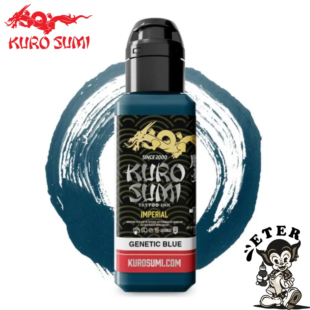 Kuro Sumi Imperial Tattoo Ink – Genetic Blue este un tus de inalta calitate, conform cu reglementarile EU REACH. Kuro Sumi este un brand de cerneala originar din Japonia, care exista de peste 20 de ani. Toate tusurile Kuro Sumi au fost testate de artisti renumiti la nivel mondial pentru performanta, claritatea culorilor si usurinta in utilizare.