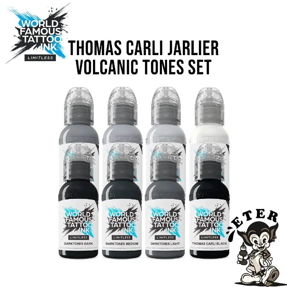 Realism incredibil, umbre fine si o profunzime extrema – aceasta este esenta stilului lui Thomas. Acum, artistii din intreaga lume pot experimenta aceeasi versatilitate si precizie in mixuri, cu ajutorul setului personalizat Volcanic Tones, care surprinde lumina si umbra in fiecare sticla. World Famous Ink Limitless – Thomas Carli Jarlier Volcanic Tones 30ml este alegerea ideala pentru shading, texturi si lucrari in tonuri de gri. Tusurile din set contin exclusiv pigment alb si negru, pentru a obtine cele mai neutre tonuri.