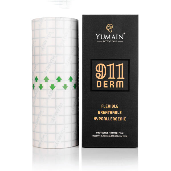 YUMAIN – 911 Derm Roll/ Folie Film Vindecare 15cm x 10m este o folie transparenta de calitate medicala, conceputa pentru a proteja si accelera vindecarea tatuajelor. Actionand ca o “a doua piele”, creeaza o bariera impermeabila si respirabila, protejand tatuajul de factori externi precum bacteriile si murdaria, permitand in acelasi timp oxigenarea optima pentru o vindecare eficienta.