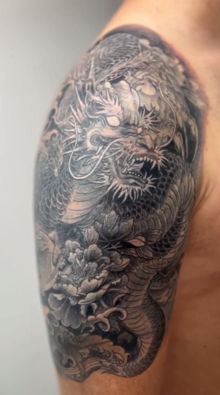 Fiecare linie urmareste forma naturala a corpului, umbrele creeaza atmosfera, iar textura da profunzime. Indiferent daca lucreaza o piesa subtila sau o compozitie puternica, cu teme mai intunecate, Alex urmareste intotdeauna echilibrul perfect intre emotie si precizie.